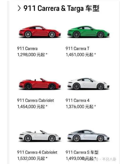据说侃爷给老婆买的是保时捷 911 卡雷拉 T,比起其他豪车,不算过于贵哈。