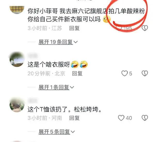 网友们还纷纷留言,说要给汪小菲筹钱买件新衣服,说你这背心赶紧扔了吧,我已经拍过酸辣粉了。