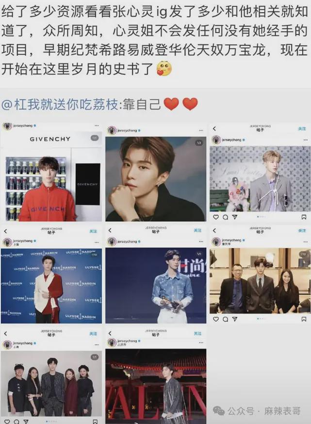 范冰冰团队的张馨灵,负责时尚资源版块,也发了不少范丞丞。