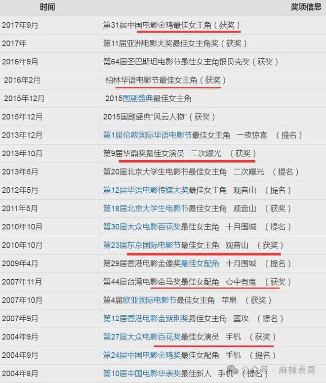 百花、金鸡、华鼎、金马、东京电影节,最佳女主和女配都拿过。