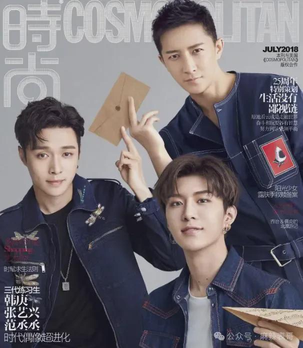 而当时和他一起上杂志的,是韩庚、张艺兴。