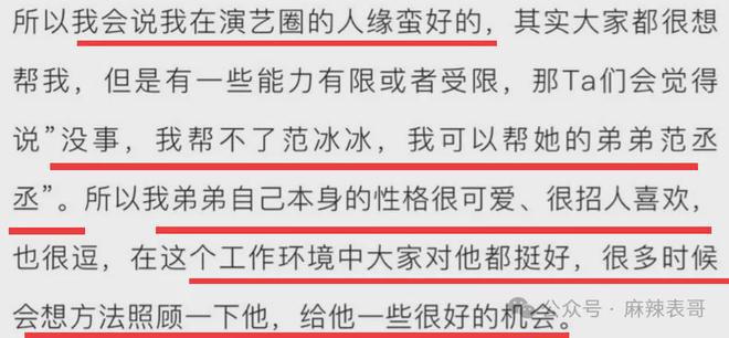 不仅否认了范冰冰拉扯弟弟的功劳,甚至要踩一脚范冰冰。