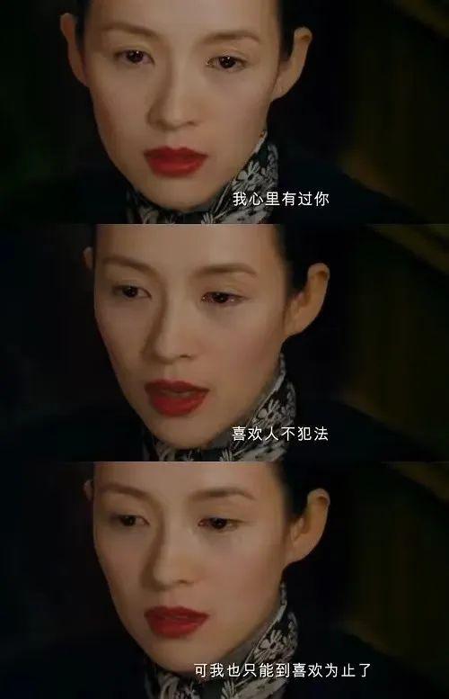 我想起《一代宗师》里,章子怡饰演的宫二有一段独白令所有影迷都印象深刻。面对叶问,她缓缓抬起头,承认了埋藏于心底的爱,却也明白一切都将到此为止,眼底全是绝望和心死。