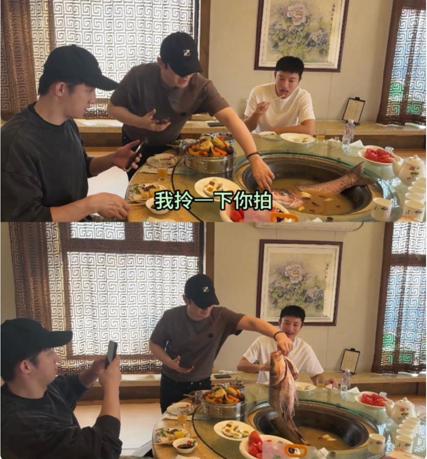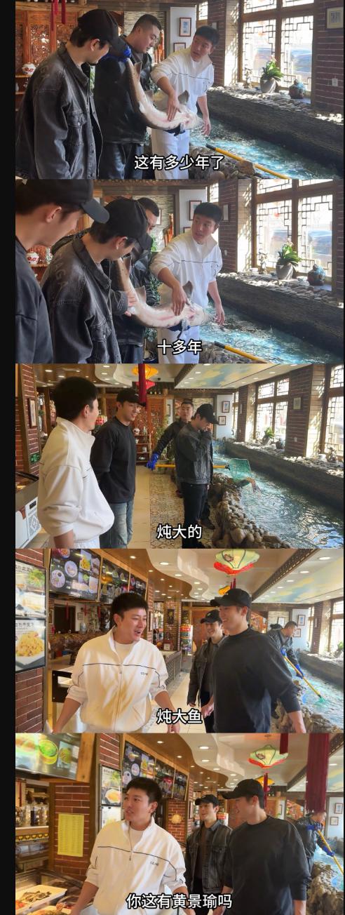 但是在黑龙江,黄景瑜,黄晓明还有贾乃亮真的去吃鱼了,还被网友们偶遇了。