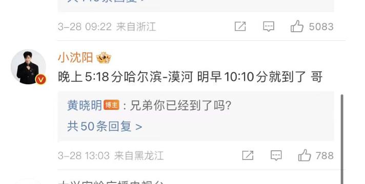 黄晓明一大早就在社交平台上求助,说是到漠河的飞机取消了,要怎么过去。