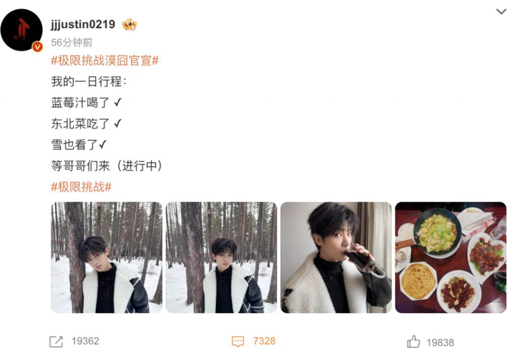 目前的嘉宾,只有黄明昊一人到了漠河。
