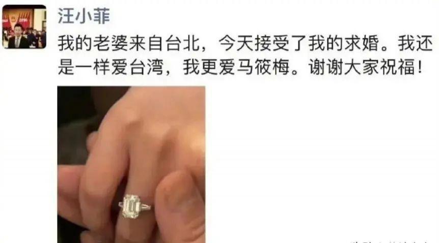 汪小菲深夜在朋友圈发文官宣自己求婚成功,表白未婚妻,亲密的称呼她为老婆,说自己还是一样的爱台湾省,但更爱马筱梅。