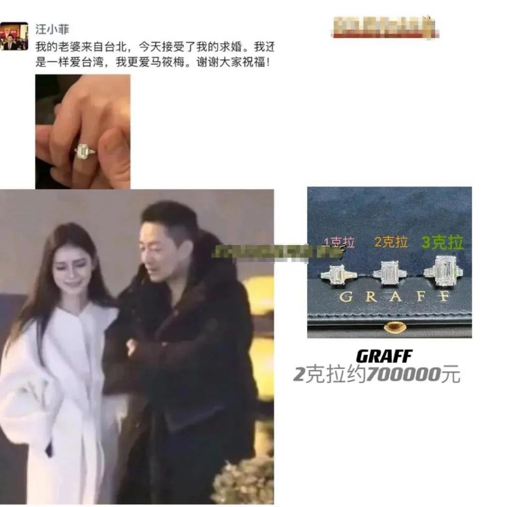 随后有网友扒出汪小菲送给未婚妻马筱梅的钻戒是高级奢牌,两克拉就价值 70 万左右。之前汪小菲还给她买了皇冠和蓝宝石项链,价格也不低。