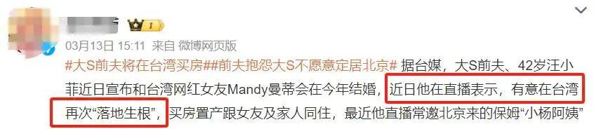 在大 S 二婚一年多之后,汪小菲也和新女友 Mandy(马筱梅)求婚成功了。