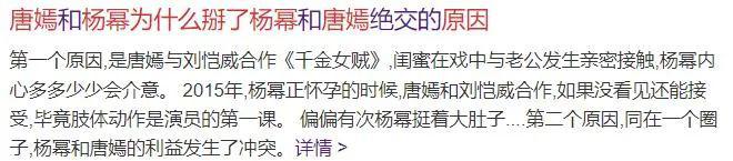 而有关杨幂唐嫣友情破裂的原因,网络上更是不下十几种版本。