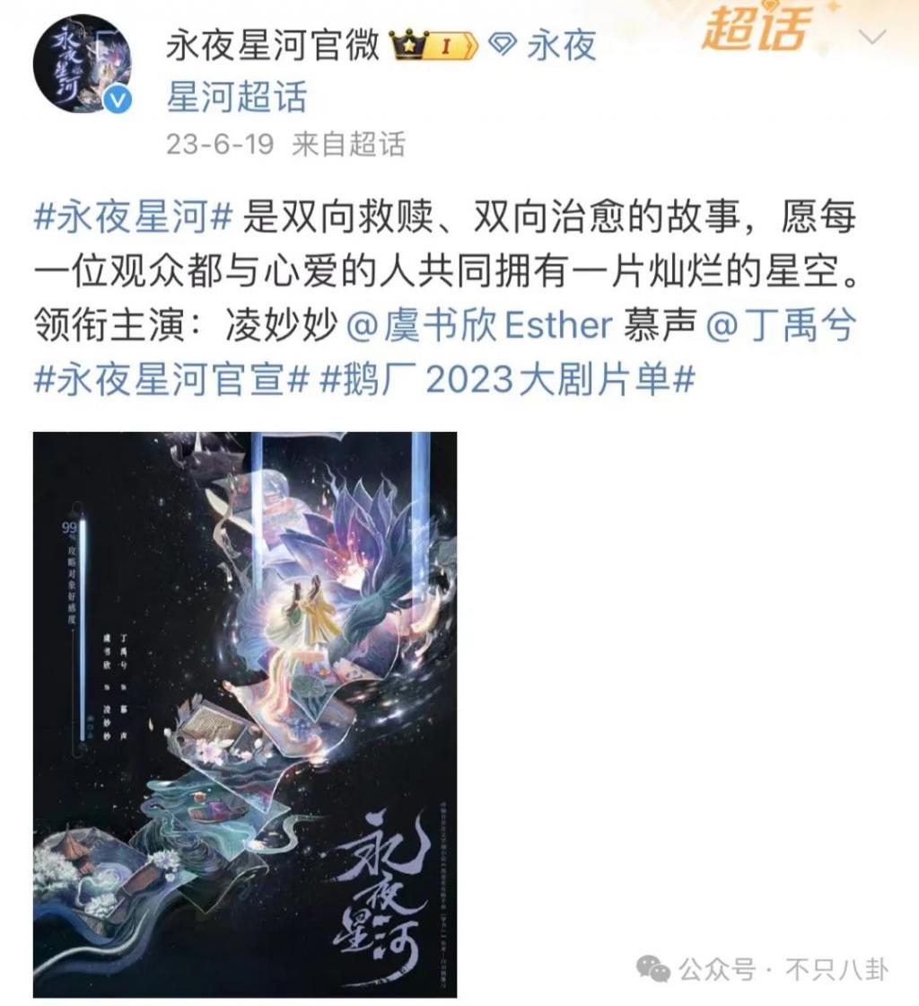 《永夜星河》原著是《黑莲花攻略手册》,早在选角期间这个 ip 就被炒成了 " 世界名著 ",遛遍 90-95 生花,最后花落虞书欣、丁禹兮。