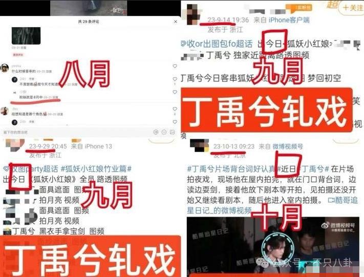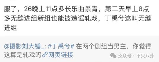 粉丝还翻出了横店代拍的帖子,称代拍可以证明丁禹兮是在上一部戏杀青后,才进的新组。