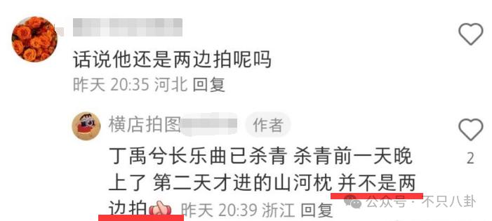 并且不只一个横店代拍为丁禹兮辟谣,说他没轧戏,不是两边拍。