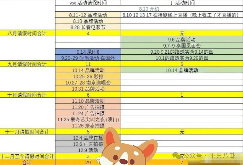 丁禹兮粉丝拉表为证,称虞书欣进组 4 个月请假将近一个月,而丁禹兮只请了 7 天假。