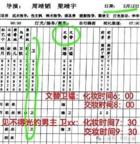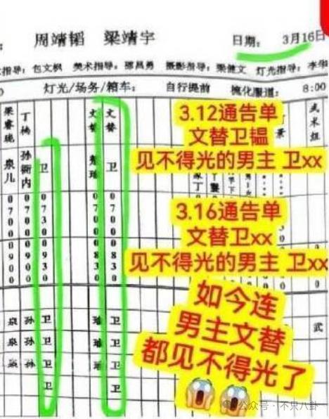 据网友分析,3.12 通告单上,男主文替写了 " 卫韫 " 全名,到男主本人,就只用 " 卫 " 一个字代替。