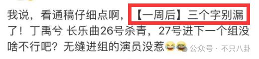 况且刘大锤也说," 一周后 " 才在新组见到丁禹兮,更证明丁禹兮是无缝进组。