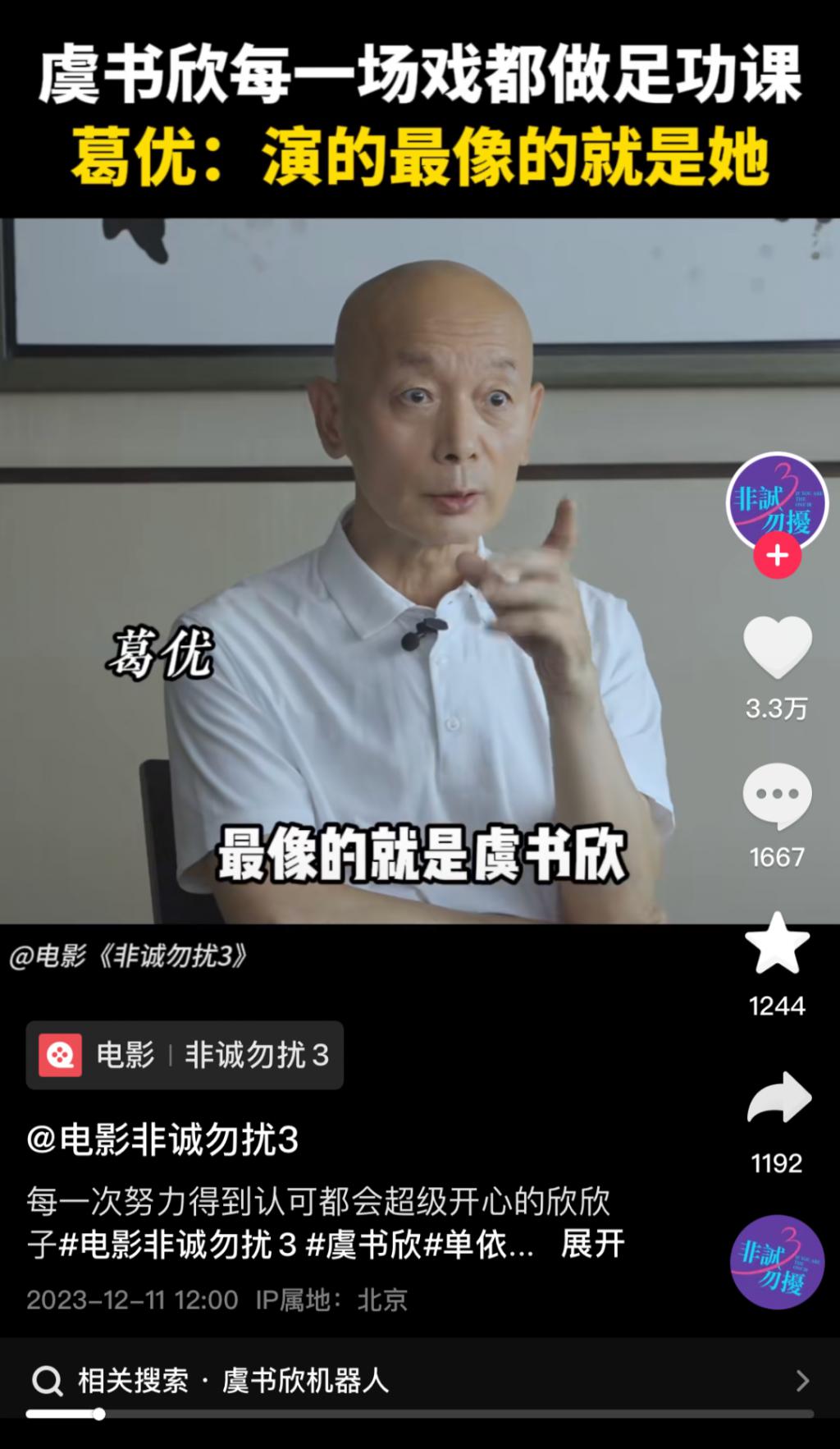 虞书欣在《非诚勿扰 3》里,搭档各路演技大拿," 成功 " 演绎了范伟老师的机器人秘书。