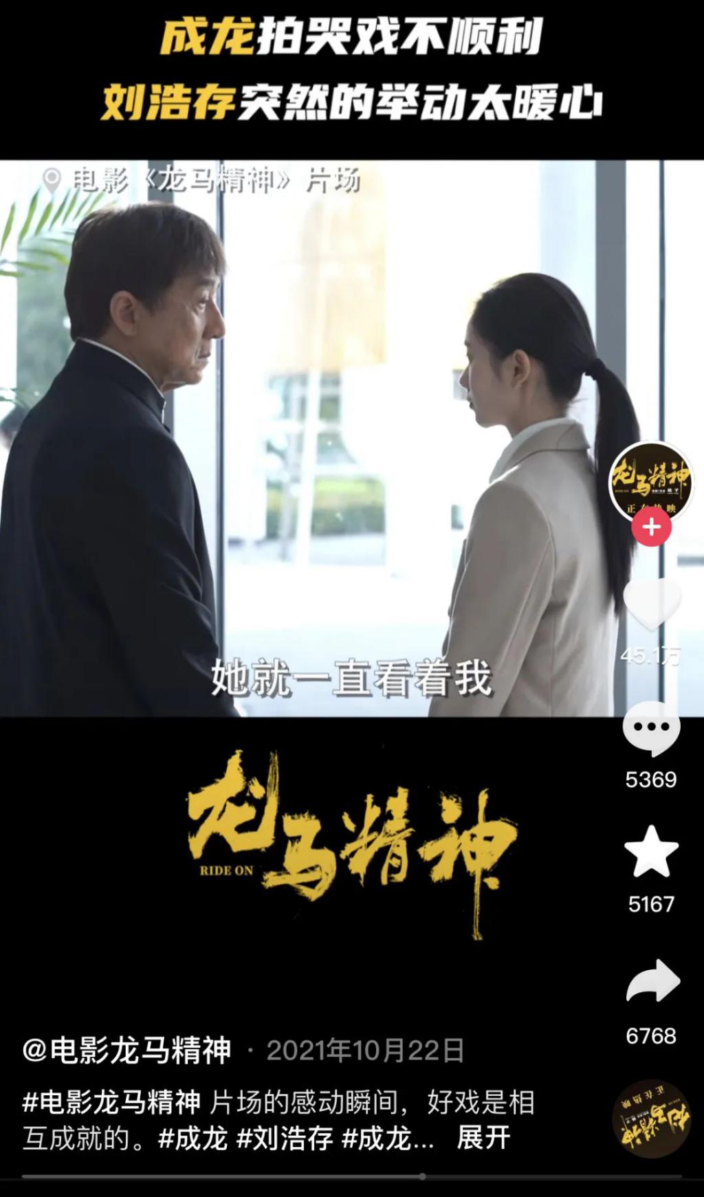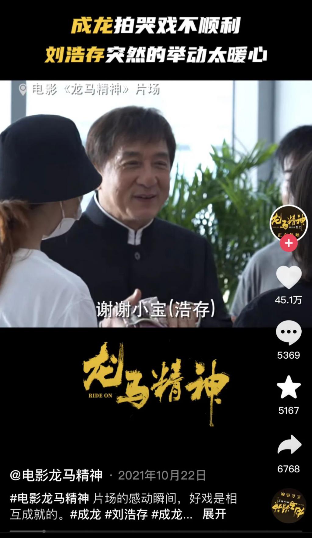 还有成龙大哥,和刘浩存合作拍了《龙马精神》,直言特别感谢刘浩存。