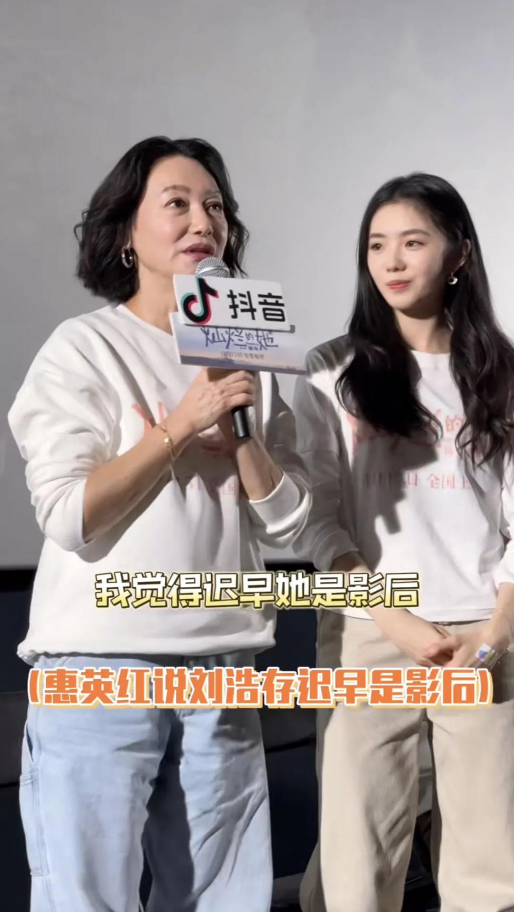 在电影《灿烂的她》首映礼上,红姐大夸存子天赋派,直接预测刘浩存迟早是影后。