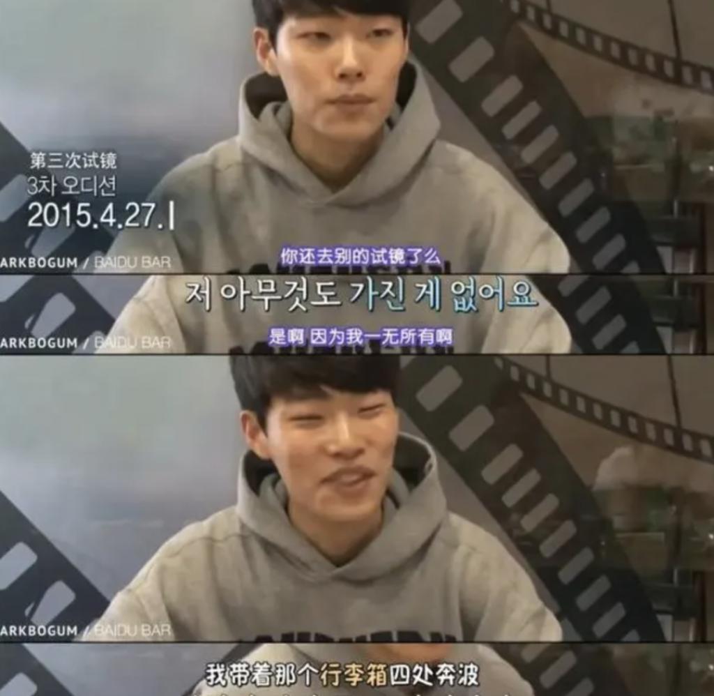 而柳俊烈试镜的时候,是一个没有经纪公司,拖着行李箱四处奔波,试镜结束还要去还衣服的新人。