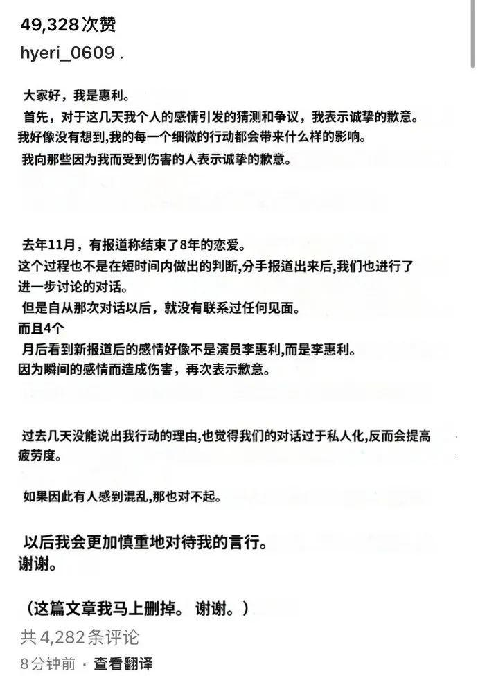 重点是,网友抽丝剥茧一分析,发现这段感情似乎是 " 无缝衔接 ",而李惠利恋爱期间也没有被认真对待和珍惜。