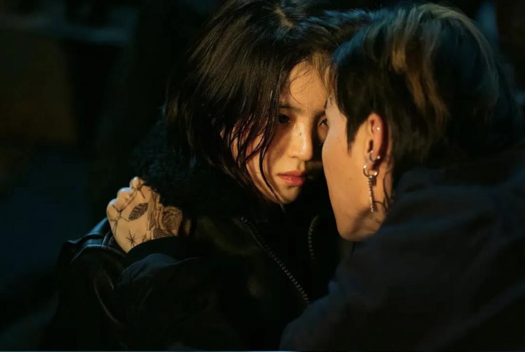 还有一个是《我的名字》女主智友,从头到尾打打杀杀快意恩仇,韩素汐的打戏丝毫不含糊,业务能力挺强悍。