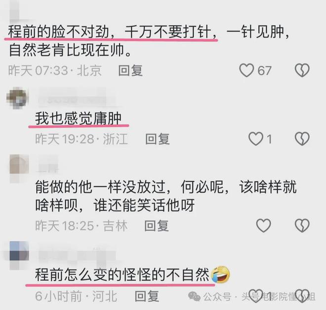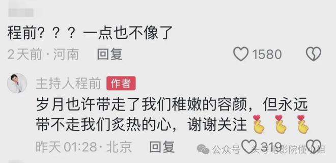 对于说他 " 一点也不像了 " 的声音,程前还专门回复写道: