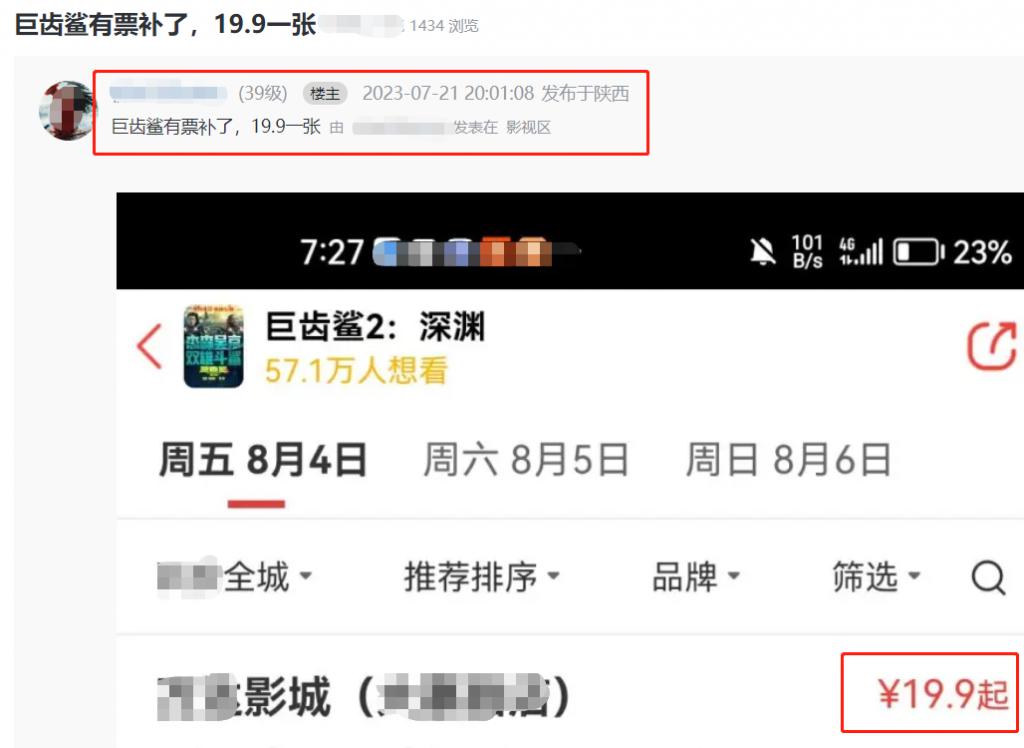 不仅如此,《巨齿鲨 2》这波预售试水可不一般,为了冲击票房,《巨齿鲨 2》难得采用了 " 票补 ",一下子提升了竞争力,要知道近些年一到热门档期,电影票价总是水涨船高,就说多少年没有 19.9 元的电影票了。