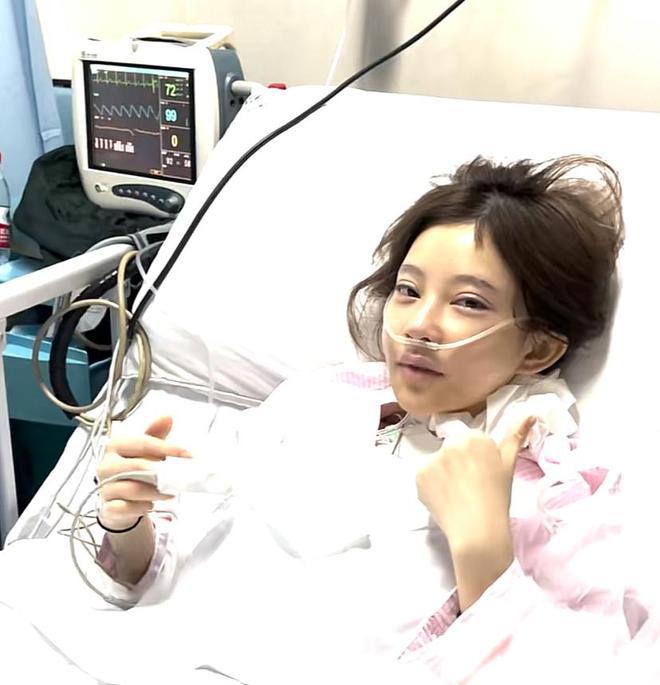 采访环节中,节目组还将冯提莫接受治疗时的照片曝光出来,只见她身穿病号服虚弱地躺在病床上,鼻子插着呼吸器,手指夹着心跳测量仪器。