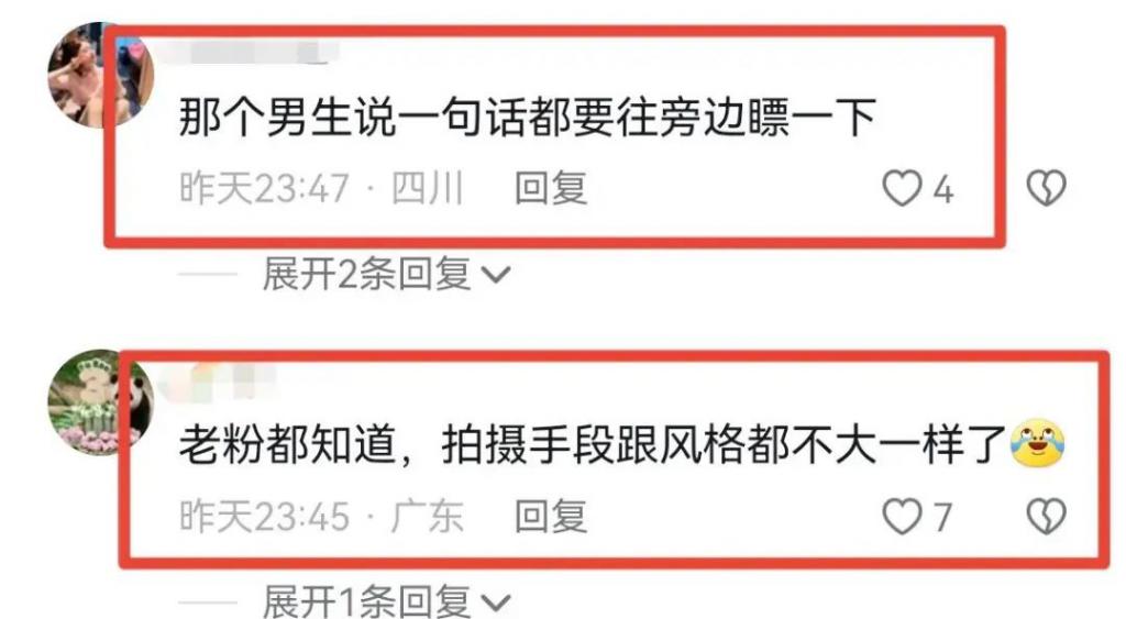 以前都是自拍,现在成了第三人拍摄,表情也不自然,剪辑更是逐帧跳帧的剪辑,操作十分的不同寻常。