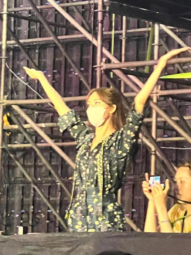 之后林志玲更是张开双臂,做出拥抱的姿势,很是高调。而她之所以如此的躁动不安,完全是因为台上的老公 Arika 正在卖力的表演。