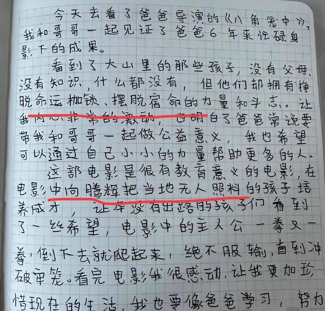 王宝强看到了女儿给自己的鼓励手写信,他透露儿子和女儿都去看了自己的电影,得知孩子的同学们也去看了,自己很激动,女儿表示自己演得挺棒的,挺有劲儿的,有这样子的爸爸感觉到骄傲。