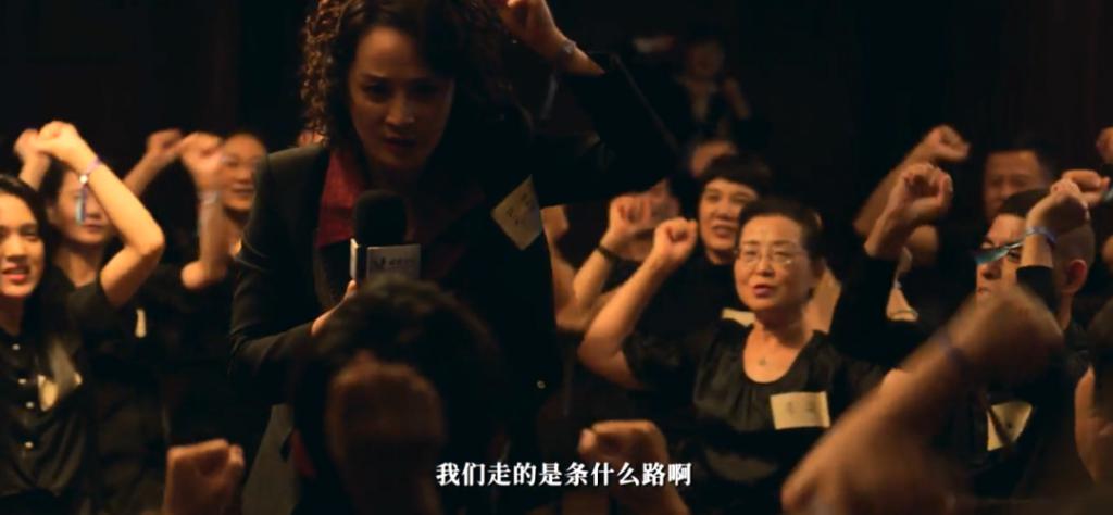她可能也明白,蝴蝶国际或许也是一场骗局。与儿子正面冲突的一场戏,她大喊大叫,说我就是一分钱都赚不到,但是我也开心。