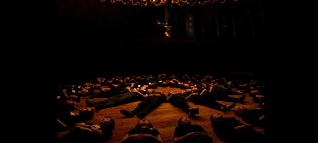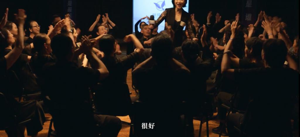 人们围成圈躺在地上,听讲师洗脑并纷纷痛哭流泪;