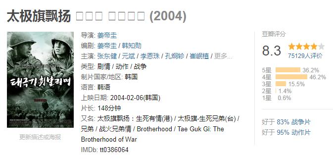 一部必看的韩国战争电影,通过两兄弟(张东健和元彬)因朝鲜南北战争而发生的命运变化,深刻展现了战争中人类被主义而折磨出现的疯狂与悲哀。