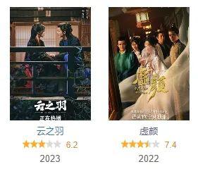前面说到的上桌吃饭的古装演员,丞磊和锦超,他们后期正儿八经进入内娱,分别参演的《长月烬明》和《云之羽》,评分仅为 5.6 和 6.2。