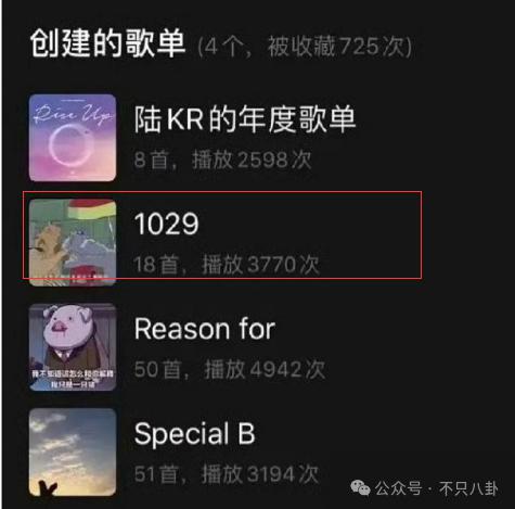 亮点和暧昧点在于歌单名称1029,因为史芮伊的生日就是10月29。