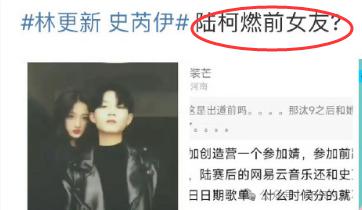 网络上传她和同样参加选秀,且通过《青春有你2》成团的THE9成员陆柯燃,疑似有绯闻。