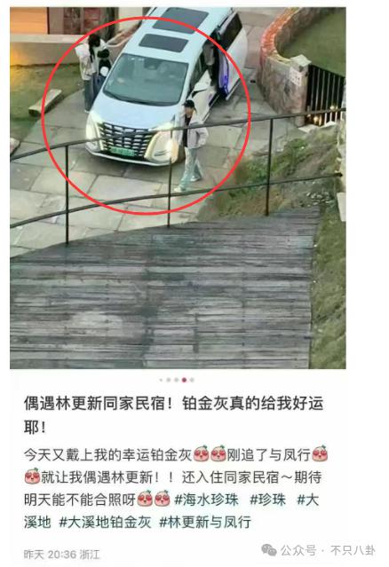 有路人前两天也爆出过偶遇林更新的照片,照片中还能看到史芮伊,几乎和江小宴拍到的画面一模一样。