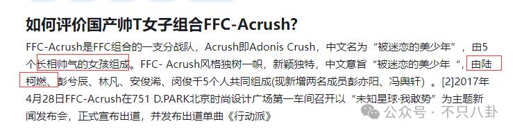 史芮伊过去是ffc girl crush的成员,陆柯燃是ffc Acrush成员,当时公司采取的路线就是让团员一起合拍营业,专门供给粉丝嗑,有些合影都是工作的一部分而已。