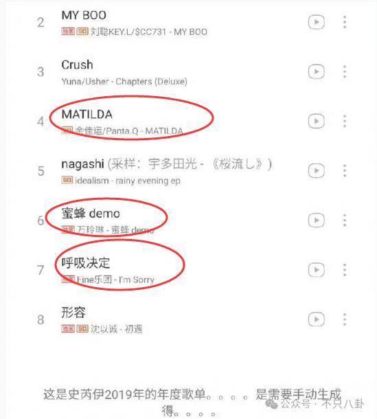 而陆柯燃这份歌单里,和史芮伊2019歌单有好多重复的歌曲,她们的关系是真的很好吧。