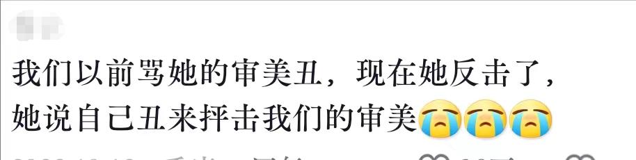 网友苦笑:我们以前骂她的审美丑,现在她反击了,她说自己丑来抨击我们的审美。
