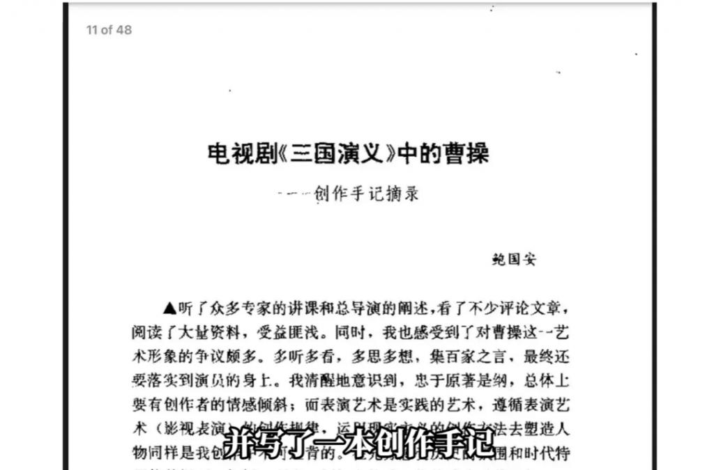 为了演好,他曾向 300 人做调查,问他们心目中的曹操何样,并写了一本创作手记。