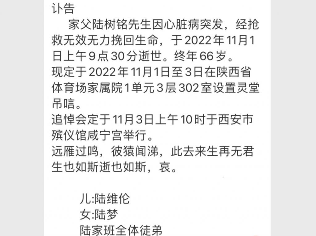 刘关张三兄弟,关羽先去,现实里,陆树铭先走。