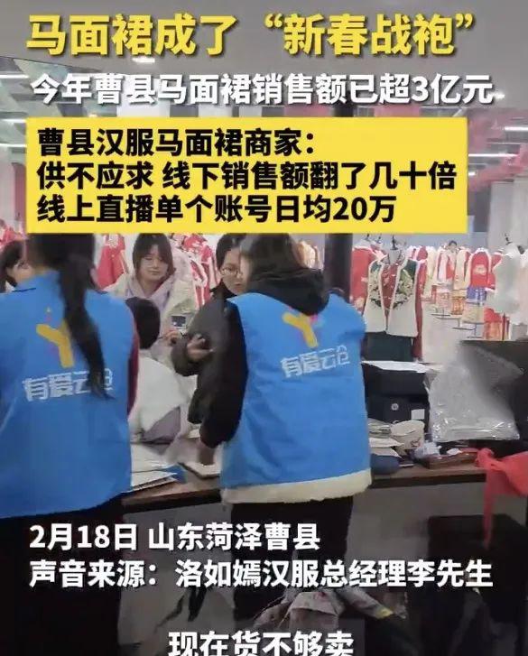 到了今年,老钱风、美拉德穿搭已经过时了,新中式却越战越勇。马面裙、盘扣外套等爆款,无一不在助力它成为全民潮流。仅马面裙这一单品,在淘宝双十一期间就卖出了超 73 万条,生产地山东曹县更是因此成为了新一个义乌。