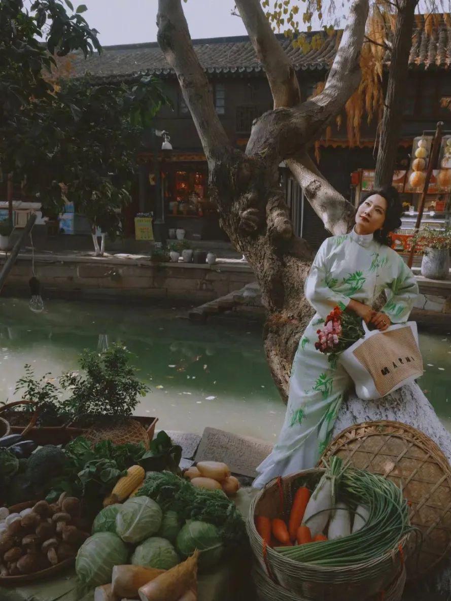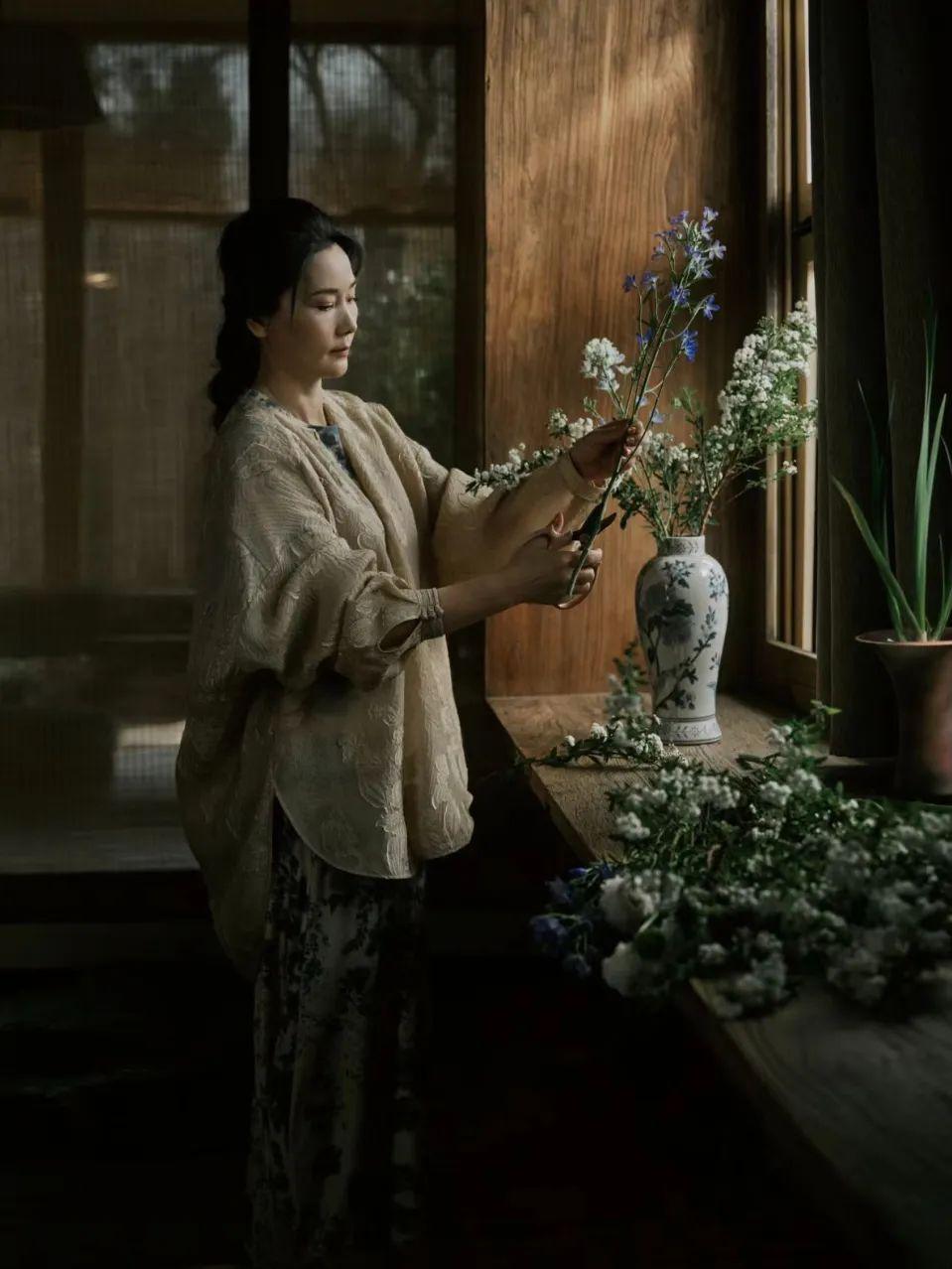何赛飞能亲自设计新中式风格的衣服,也是因为,演戏曲出身的她,在生活里就浸润于这套美学系统里。除了出席颁奖礼、上节目、拍杂志大片外,生活里她也是这样穿的。这点从网友们偶遇的合照里就可以看出。