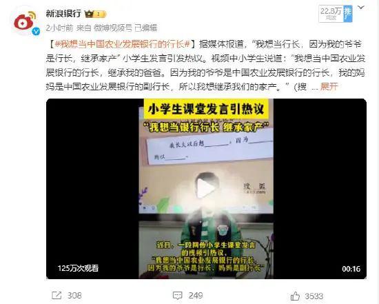 可以说紧跟时事,前几天不是有个小孩子爷爷爸爸行长的社会新闻吗,真贴近现实社会。