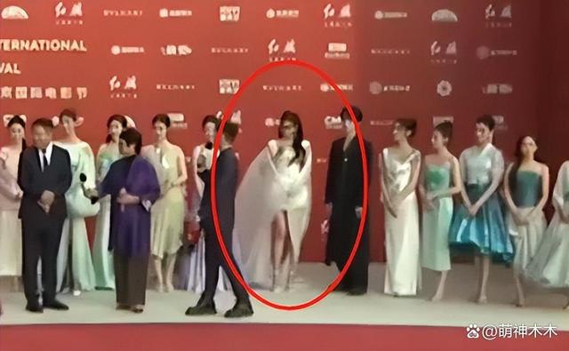 在定点拍照的时候,鹤男很明显没有站稳,差点儿就要摔倒,还好旁边的女演员拉住了她,真是让人抹一把冷汗。