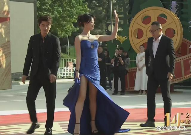 看得出来,明星们为了北影节也是下了狠功夫,但有时候用力过猛也很尴尬。蓝盈莹一身蓝色斜开衩长裙亮相红毯,看起来大气优雅,但是现场的风实在太大了!走红毯瞬间成为了一件 " 惊险 " 的事情。