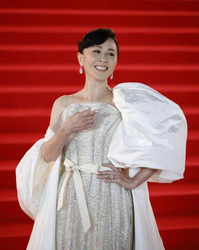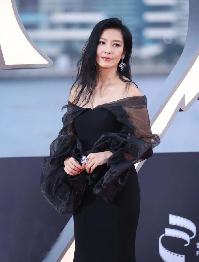 在《繁花》里客串过的林熙蕾,身穿露肩黑色纱裙走上红毯,即使是年近 50 岁了还依然端庄优雅,真岁月不败美人啊。